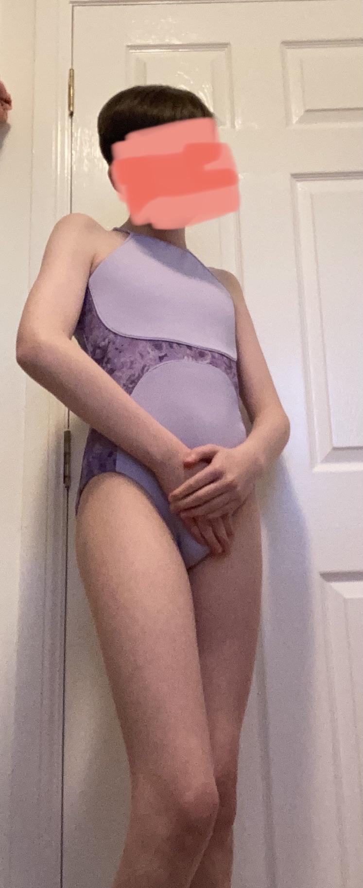 Hi I'm back with my lavender leotard. There are much more on the way but I'm wondering, in the pic, do I take my hands away?😉 : r/crossdressing